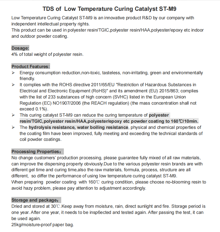 TDS of Low Temperature Curing Catalyst ST-M9